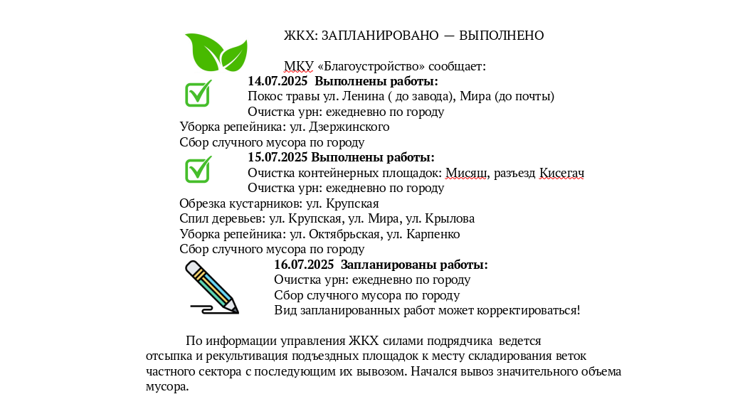 МКУ "Благоустройство" и управление ЖКХ сообщают: