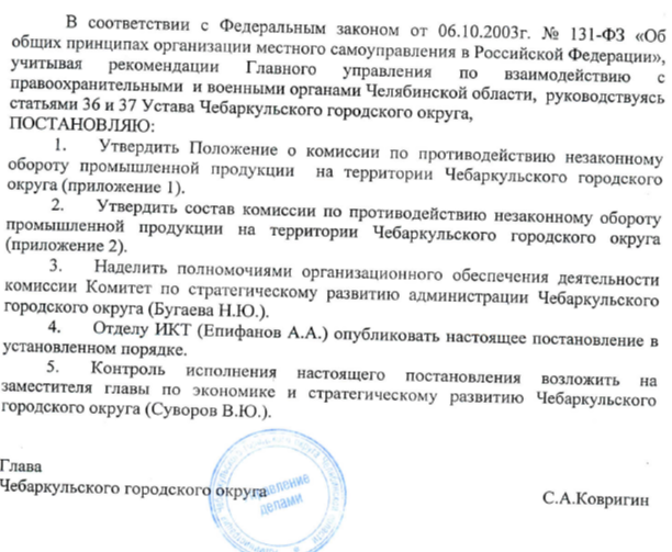 Постановление 15.02.2016 №97 Об утверждении состава комиссии по противодействию незаконному обороту промышленной продукции на территории Чебаркульского городского округа округа