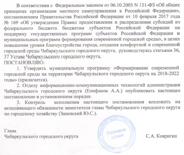 №16 от 18.01.2018 Об утверждении муниципальной программы «Формирование современной городской среды на территории Чебаркульского городского округа на 2018-2022»