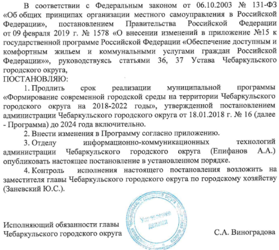 Изменения в муниципальную программу «Формирование современной городской среды на территории Чебаркульского городского округа на 2018-2022 годы»